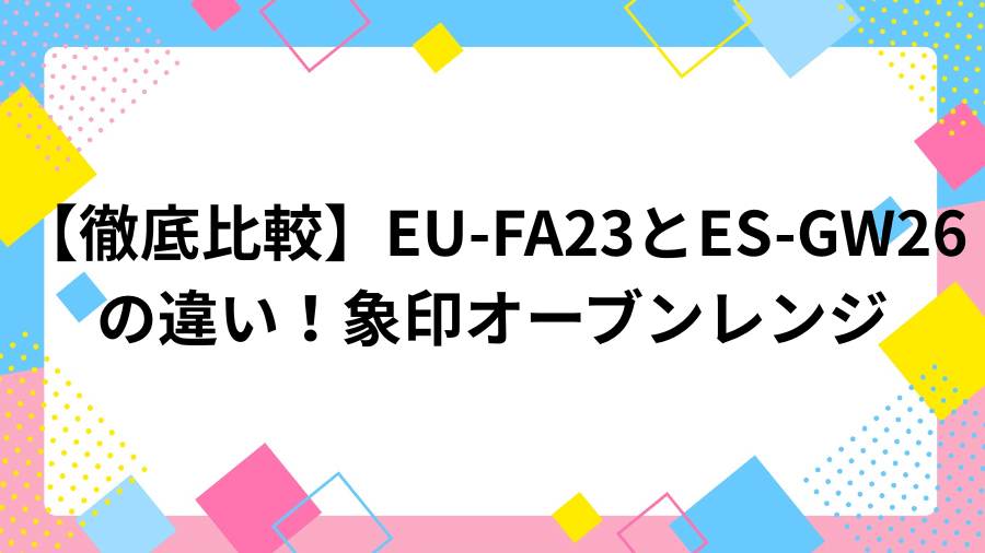 この記事では、象印オーブンレンジEU-FA23とES-GW26の違いについて解説します。 象印のオーブンレンジを買いたいけど、EU-FA23とES-GW26のどっちを選べばいいか分からない... その気持ち良~く分かります。両機種の違いを詳しく比較して、あなたの家庭に最... -