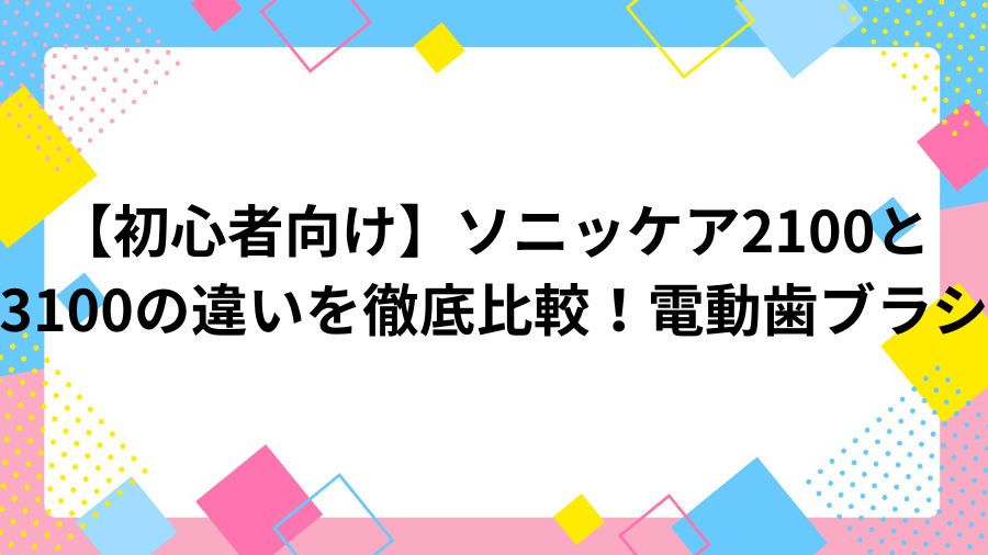 この記事では、フィリップス ソニッケア2100シリーズと3100シリーズの違いについて詳しく解説します。 どちらの電動歯ブラシを選べばいいか迷っているんです。機能や価格の違いがよく分からなくて... その悩み、よく分かります。2100と3100の主な違いは過... -