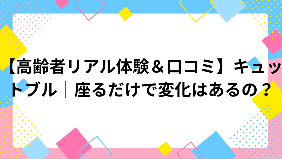 【高齢者リアル体験&口コミ】キュットブル|座るだけで変化はあるの?