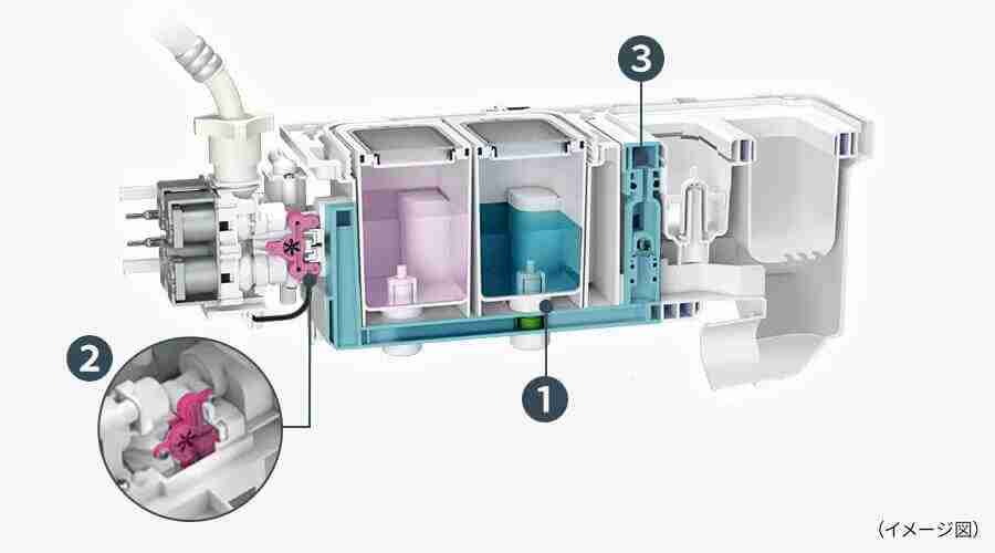 ES-12X1では、液体洗剤・柔軟剤タンクに新たに液だれ防止機能が搭載されました。
