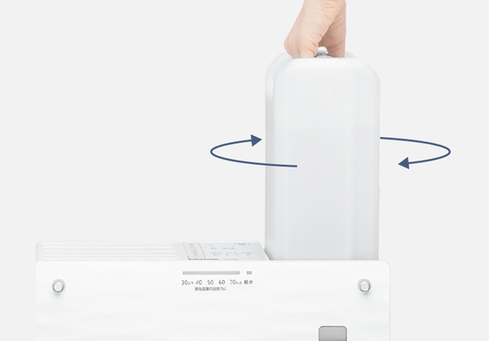 タンクの向きを気にせず、どちら向きでもセットできる親切設計。朝の忙しい時間や暗い寝室でも、さっと給水してセットできます。小さなことですが、毎日使うものだからこそ嬉しい配慮です。