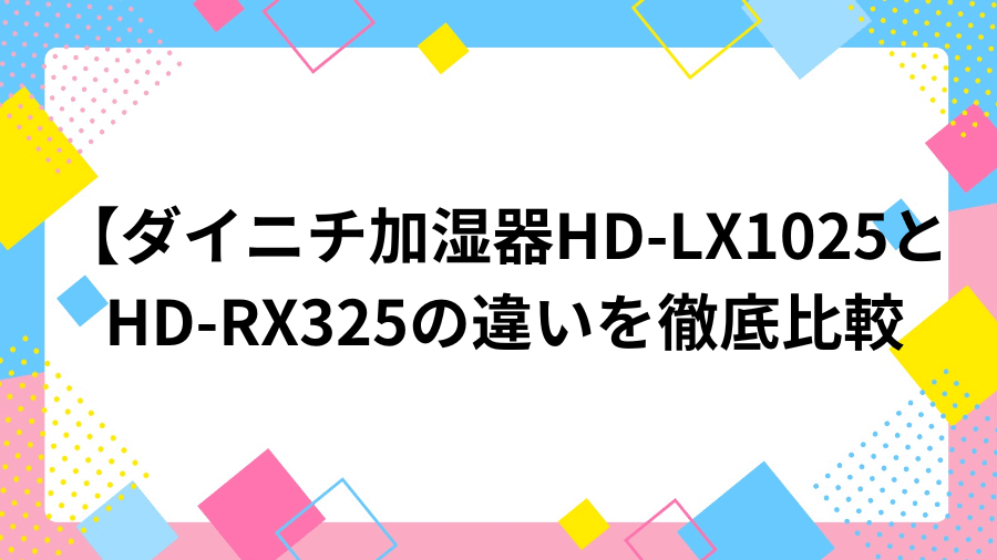 この記事では、HD-LX1025とHD-RX325の違いについて解説します。 ダイニチの加湿器を買いたいけど、LXとRXの違いが分からない。どっちを選べばいいの? 性能や機能、お手入れのしやすさなど、違いを詳しく解説します。あなたにぴったりのモデルが見つかりま...
